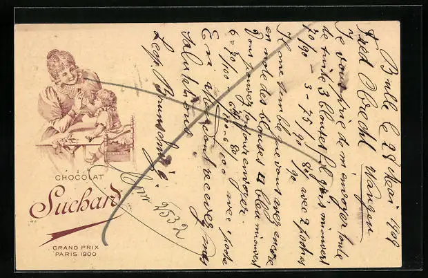 Lithographie Chocolat Suchard, Mutter mit Kleinkind