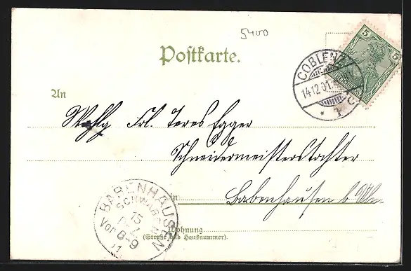 gelaufen 1901, kleiner Einriss li. oben, guter Zustand