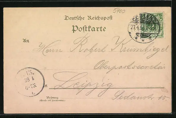 Personenbezogene Daten auf der Rückseite der Karte wurden durch blauen Textmarker unkenntlich gemacht. Die blauen Stellen sind auf die Vorderseite durchgeweicht und wirken sich negativ auf das Postkartenfoto aus