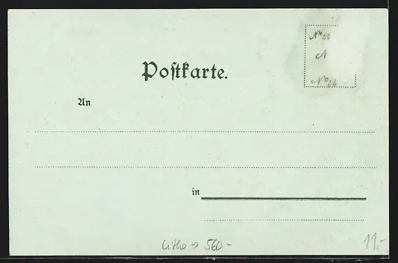 Personenbezogene Daten auf der Rückseite der Karte wurden durch blauen Textmarker unkenntlich gemacht. Die blauen Stellen sind auf die Vorderseite durchgeweicht und wirken sich negativ auf das Postkartenfoto aus