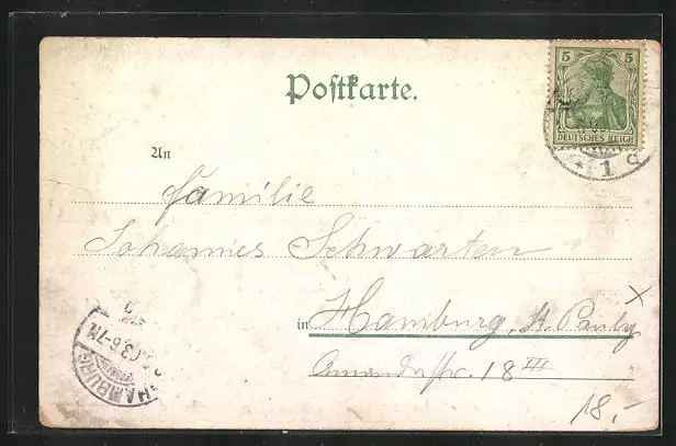gelaufen 1903, Ecken bestoßen, sonst guter Zustand
