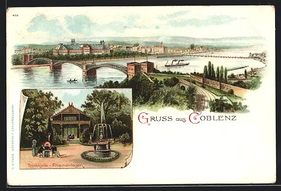 Lithographie Coblenz, Trinkhalle-Rheinanlagen