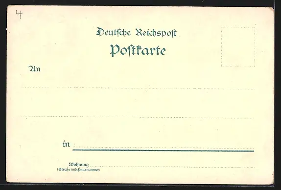 Personenbezogene Daten auf der Rückseite der Karte wurden durch blauen Textmarker unkenntlich gemacht. Die blauen Stellen sind auf die Vorderseite durchgeweicht und wirken sich negativ auf das Postkartenfoto aus