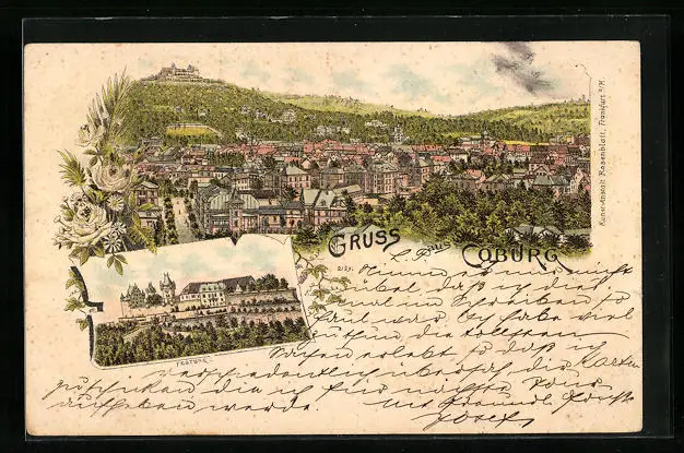 Lithographie Coburg, Ortsansicht mit Festung