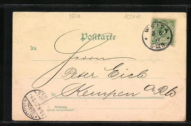 gelaufen 1897, Eckknick re. unten, guter Zustand