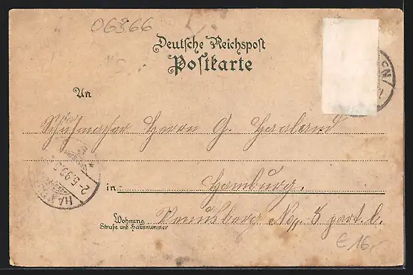 gelaufen 1899, Briefmarke entfernt, rückseitig Oberflächenschaden, rückseitig Klebe- und Papierreste, guter Zustand