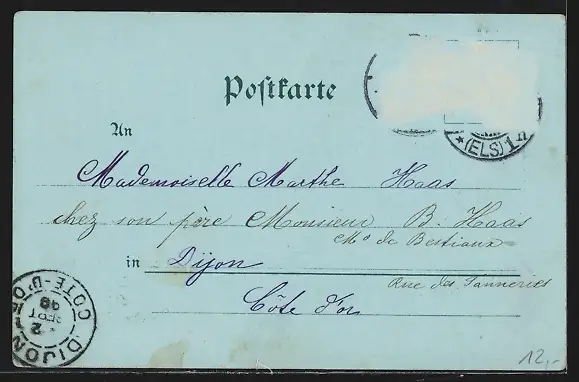gelaufen 1899, Briefmarke entfernt, rückseitig Oberflächenschaden, guter Zustand