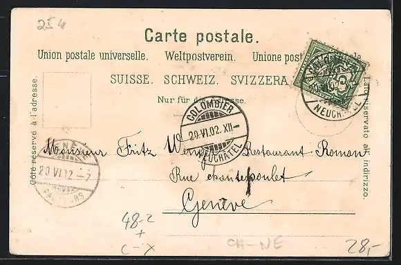 gelaufen 1902, Eckknick li. unten, guter Zustand