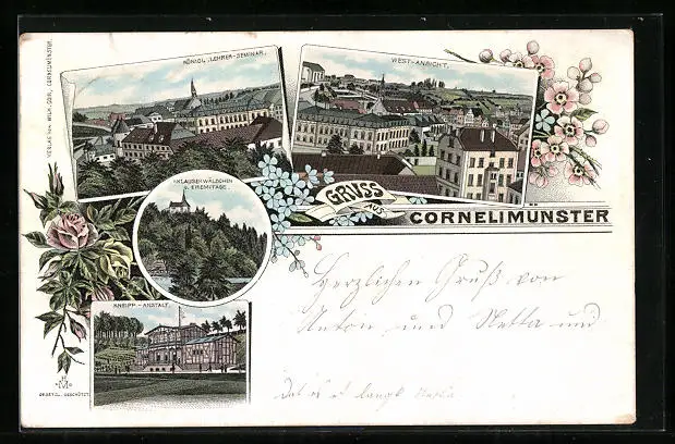 Lithographie Cornelimünster, West-Ansicht, Kneipp-Anstalt