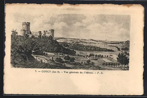 Lithographie Coucy, Vue générale du Château