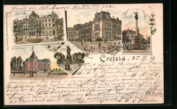 Lithographie Crefeld, Königl. Webeschule, Ständehaus