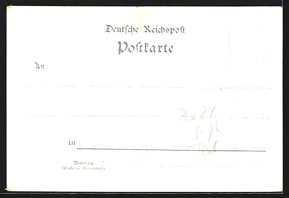 Personenbezogene Daten auf der Rückseite der Karte wurden durch blauen Textmarker unkenntlich gemacht. Die blauen Stellen sind auf die Vorderseite durchgeweicht und wirken sich negativ auf das Postkartenfoto aus