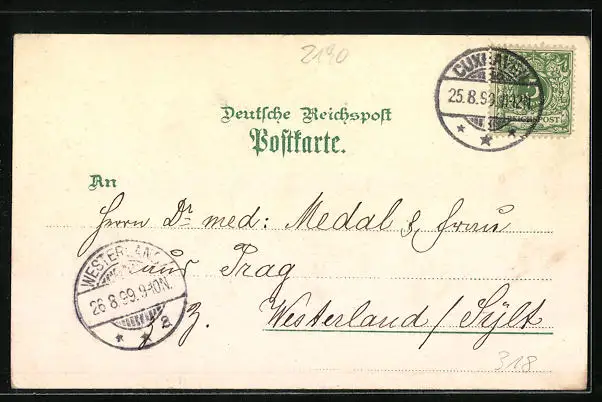 gelaufen 1899, Eckknick re. unten, guter Zustand