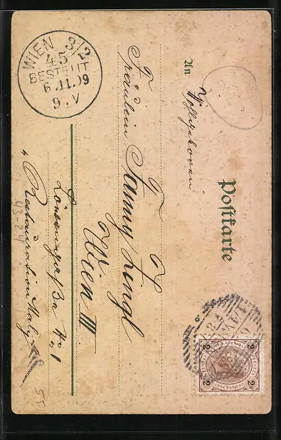 gelaufen 1909, Ecken bestoßen, sonst guter Zustand