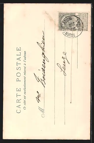 Personenbezogene Daten auf der Rückseite der Karte wurden durch blauen Textmarker unkenntlich gemacht. Die blauen Stellen sind auf die Vorderseite durchgeweicht und wirken sich negativ auf das Postkartenfoto aus