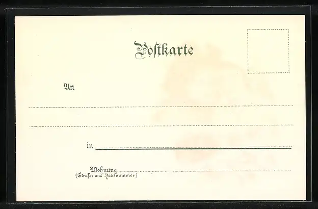 Personenbezogene Daten auf der Rückseite der Karte wurden durch blauen Textmarker unkenntlich gemacht. Die blauen Stellen sind auf die Vorderseite durchgeweicht und wirken sich negativ auf das Postkartenfoto aus