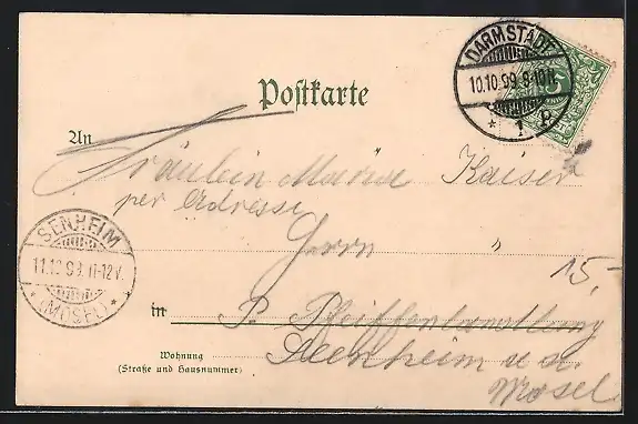 gelaufen 1899, Eckknick oben li., Stempelspur, guter Zustand