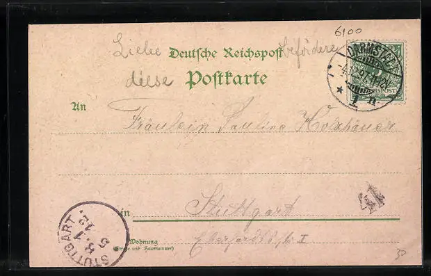 gelaufen 1897, Stempelspur, Eckknicke li., guter Zustand