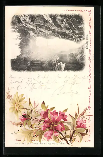 Lithographie Der Handegfall im floralen Passepartout
