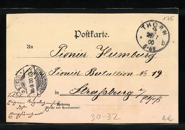 gelaufen 1900, oben und unten leicht beschnitten, Stempelspur, guter Zustand