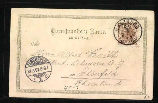 gelaufen 1897, Eckknick re. unten, guter Zustand