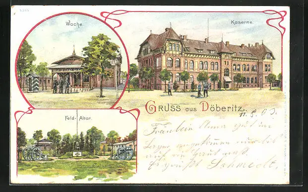 Lithographie Döberitz, Wache, Kaserne, Feldaltar