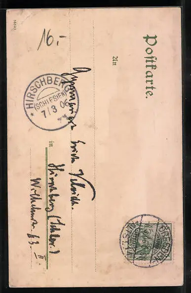 Personenbezogene Daten auf der Rückseite der Karte wurden durch blauen Textmarker unkenntlich gemacht. Die blauen Stellen sind auf die Vorderseite durchgeweicht und wirken sich negativ auf das Postkartenfoto aus