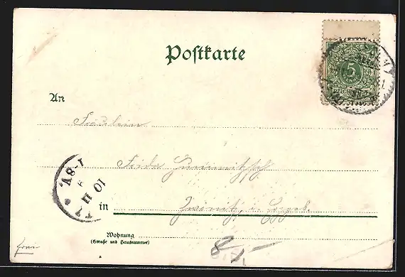 gelaufen 1899, Eckknick li. unten, guter Zustand