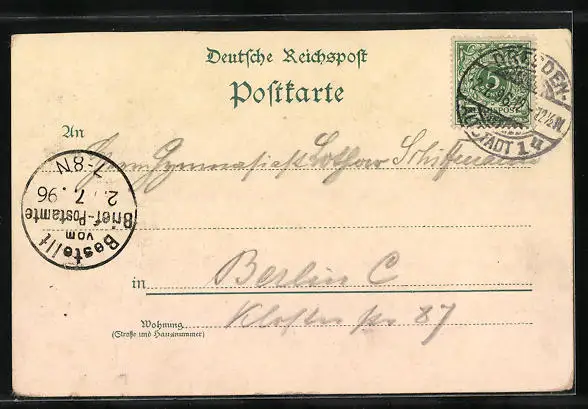 gelaufen 1896, Ecken bestoßen, Stempelspur, sonst guter Zustand