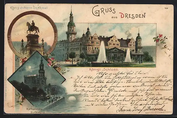 Lithographie Dresden, Kgl. Schloss, Kath. Hofkirche, König Johann Denkmal