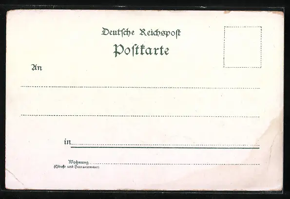 Personenbezogene Daten auf der Rückseite der Karte wurden durch blauen Textmarker unkenntlich gemacht. Die blauen Stellen sind auf die Vorderseite durchgeweicht und wirken sich negativ auf das Postkartenfoto aus