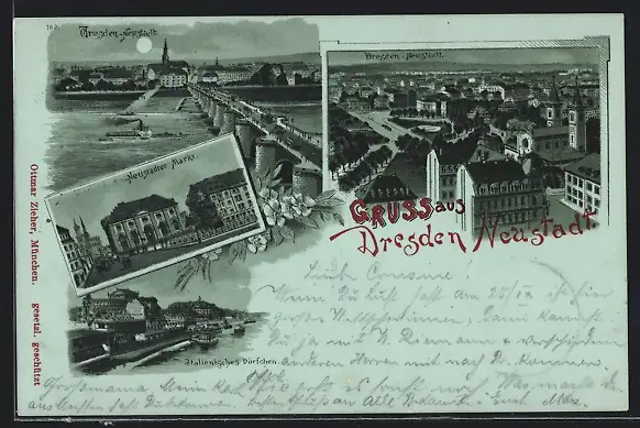 Lithographie Dresden-Neustadt, Neustädter Markt, Italienisches Dörfchen