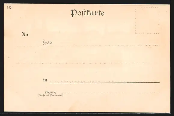 Personenbezogene Daten auf der Rückseite der Karte wurden durch blauen Textmarker unkenntlich gemacht. Die blauen Stellen sind auf die Vorderseite durchgeweicht und wirken sich negativ auf das Postkartenfoto aus