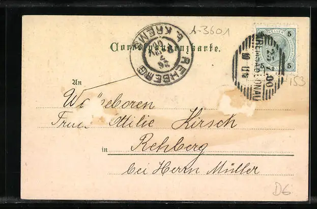 gelaufen 1900, rückseitig Klebe- und Papierreste, rückseitig Oberflächenschaden, guter Zustand