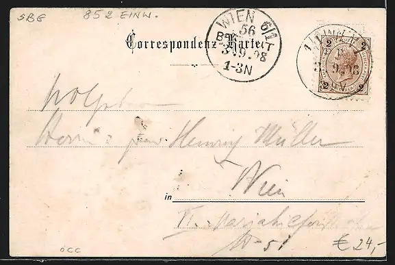 gelaufen 1898, Eckknick li. unten, guter Zustand