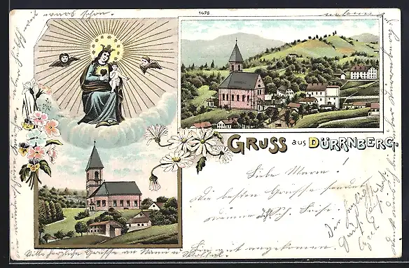 Lithographie Dürrnberg, Ortsansicht, Partie an der Kirche