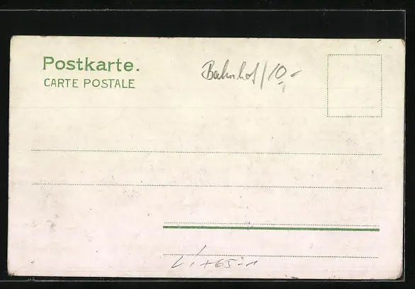 Personenbezogene Daten auf der Rückseite der Karte wurden durch blauen Textmarker unkenntlich gemacht. Die blauen Stellen sind auf die Vorderseite durchgeweicht und wirken sich negativ auf das Postkartenfoto aus