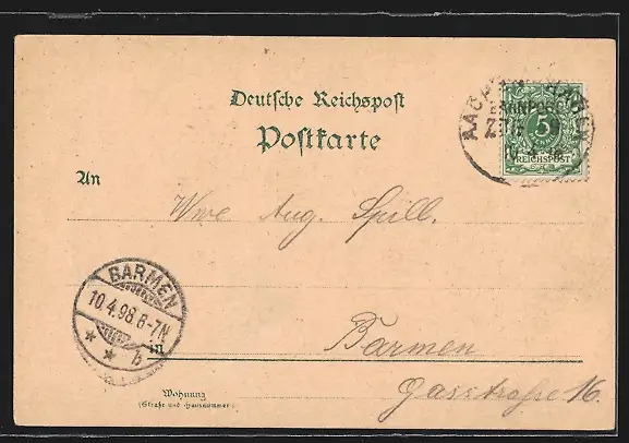 gelaufen 1898, Eckknick re. oben, guter Zustand