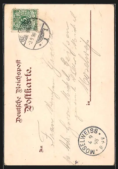 gelaufen 1898, Eckknicke re. oben, guter Zustand