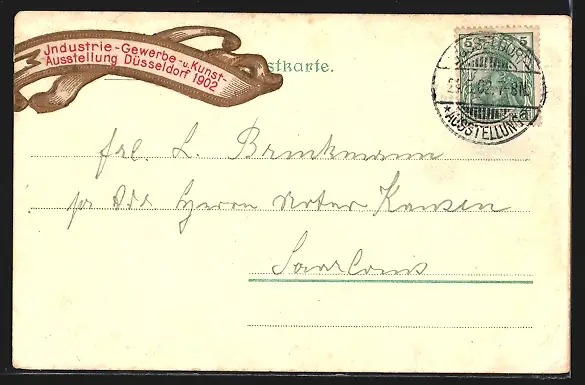 gelaufen 1902, rückseitig Klebe- und Papierreste, Stempelspur, guter Zustand