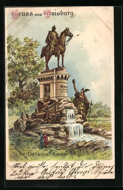 Lithographie Duisburg, Denkmal Kaiser Wilhelm I.