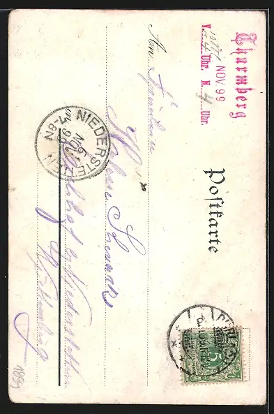 gelaufen 1899, Eckknick re. oben, guter Zustand