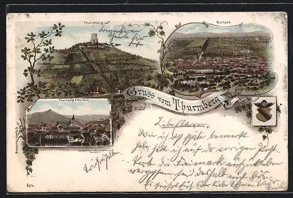 Lithographie Durlach, Panorama, Thurmberg