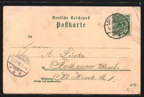 gelaufen 1898, Eckknick links oben, guter Zustand