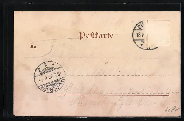 gelaufen 1899, Briefmarke entfernt, rückseitig Oberflächenschaden, guter Zustand