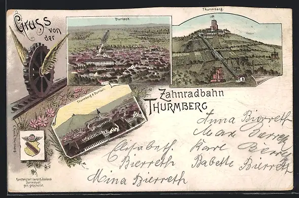 Lithographie Durlach, Thurmberg, Zahnradbahn