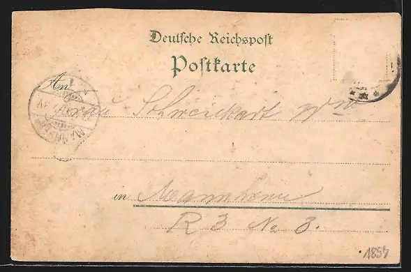 gelaufen 1897, Briefmarke entfernt, guter Zustand