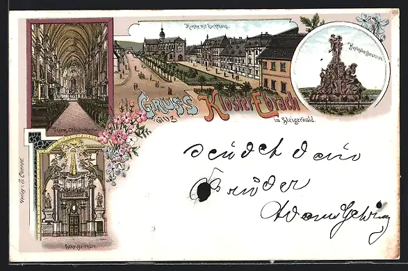 Lithographie Ebrach, Kloster: Kirche mit Zuchthaus, Inneres d. Klosterkirche