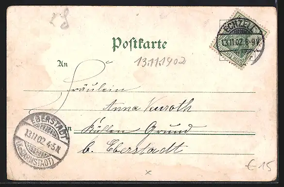 gelaufen 1902, Eckknicke oben li. und unten re., guter Zustand