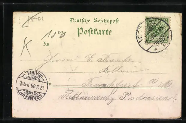 gelaufen 1898, Eckknick mit Abriebspuren oben links, Ecken bestoßen, guter Zustand
